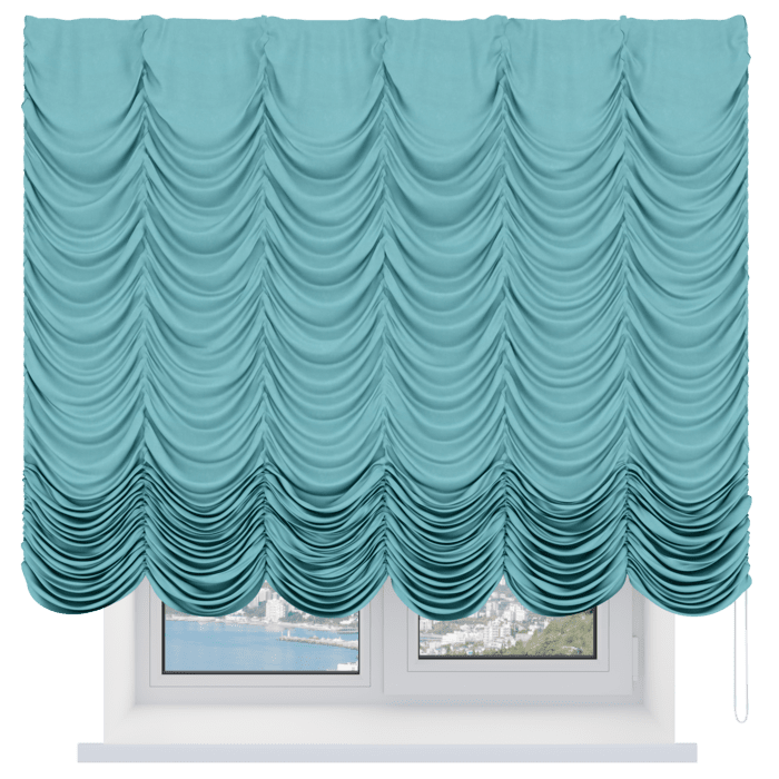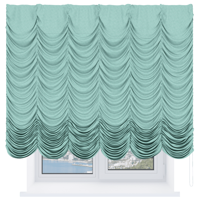 Французская штора вельвет тёмно-салатовый, карниз верёвочный