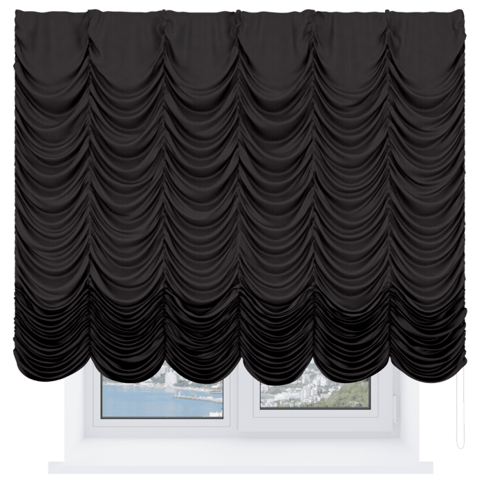 Французская штора вельвет тёмно-коричневый, карниз верёвочный