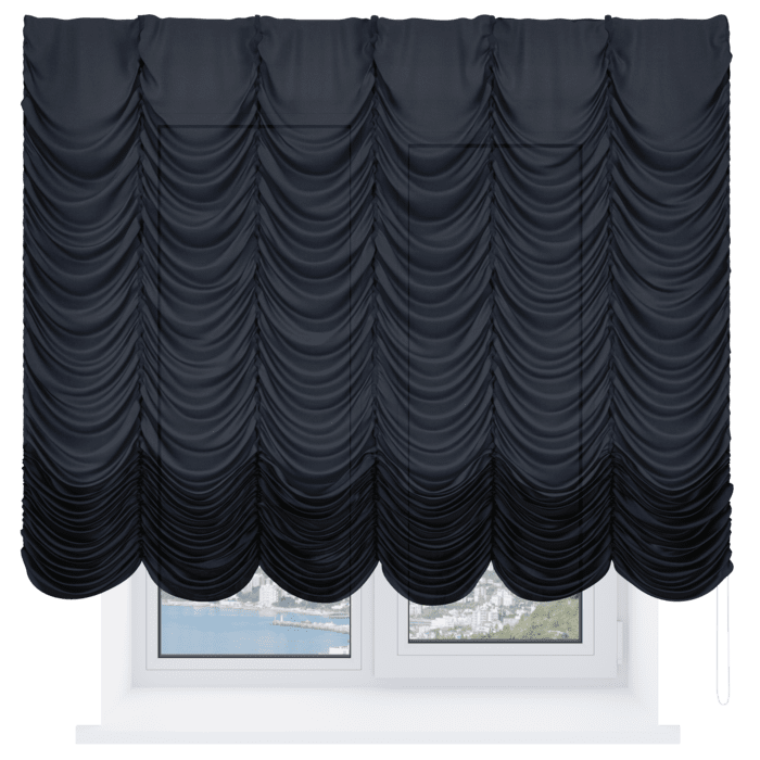 Французская штора вельвет тёмно-фиолетовый, карниз верёвочный