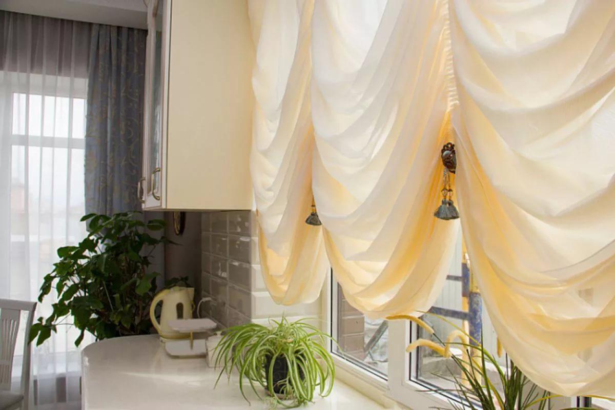 Французская штора лён кашемир коричневый, карниз верёвочный