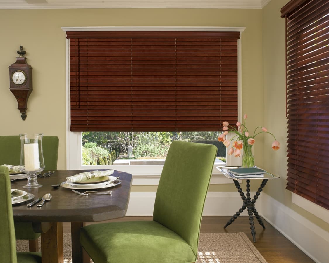 - Экономия энергии. Широкие деревянные горизонтальные жалюзи помогают снизить нагрев помещения летом и проникновение холода зимой через оконное стекло, что может уменьшить затраты на кондиционирование и отопление.